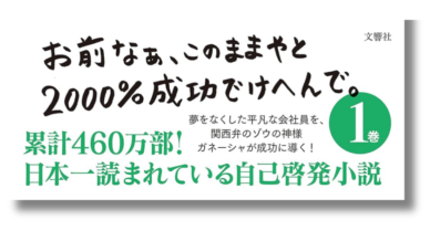 実用 「お前なぁ、このままやと2000%成功でけへんで。」 水野敬也『夢をかなえるゾウ1』の帯に刻まれた、衝撃的でユーモア溢れるコピーを紹介。「お前なぁ、このままやと2000%成功でけへんで。」という言葉に心惹かれたなら、それはあなたにとって今必要な一冊かもしれません。帯の言葉から始まる、新しい本との出会いを。 2026.02.05 実用