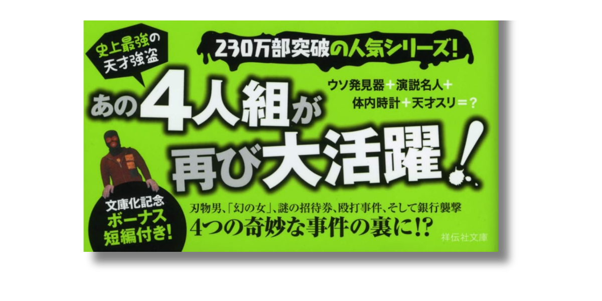 嘘を見抜く成瀬、演説の達人・響野、正確な体内時計を持つ雪子、天才スリの久遠。あの「陽気なギャング」たちが帰ってきました!