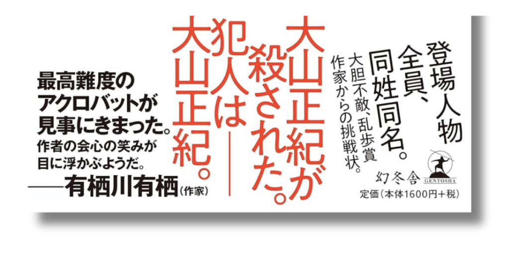 惨殺された幼女。逮捕された犯人の名は「大山正紀」。その瞬間、日本中に実在する同姓同名の「大山正紀」たちの人生は一変した。SNSでの晒し、謂れのない非難、奪われる日常。事件から数年後、名誉挽回のために集まった彼らの中に、新たな「殺意」が紛れ込む。被害者も、加害者も、全員が大山正紀。名前という牢獄に閉じ込められた男たちの、驚愕の結末とは…