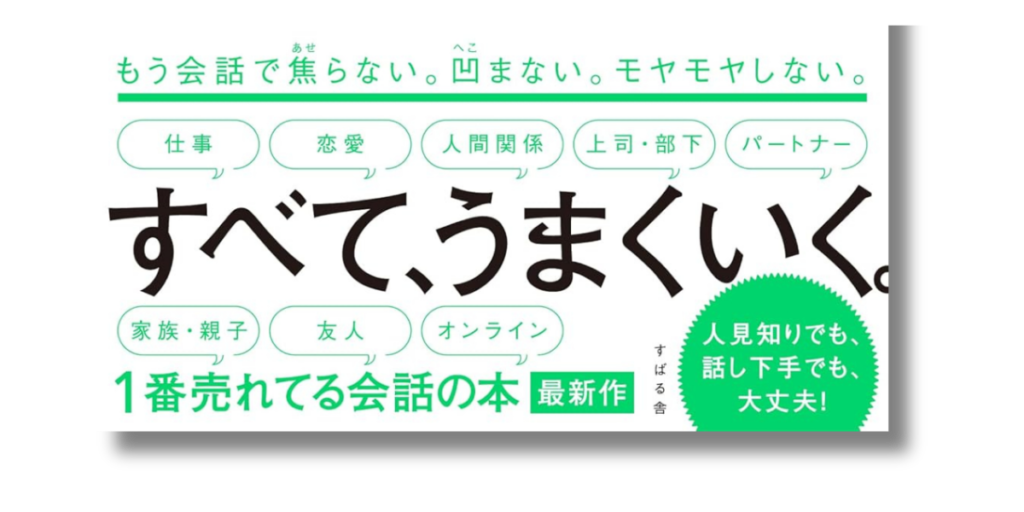 この帯の凄さは、「読者が日常で抱える負の感情」を完璧に言語化している点にあります。「焦る」「凹む」「モヤモヤする」。会話のあとに一人反省会をしてしまう人が、つい「自分のことだ」と手を止めてしまう。そして最後の一文「すべて、うまくいく。」という全肯定。不安を期待に変える、非常に計算されたコピーです。