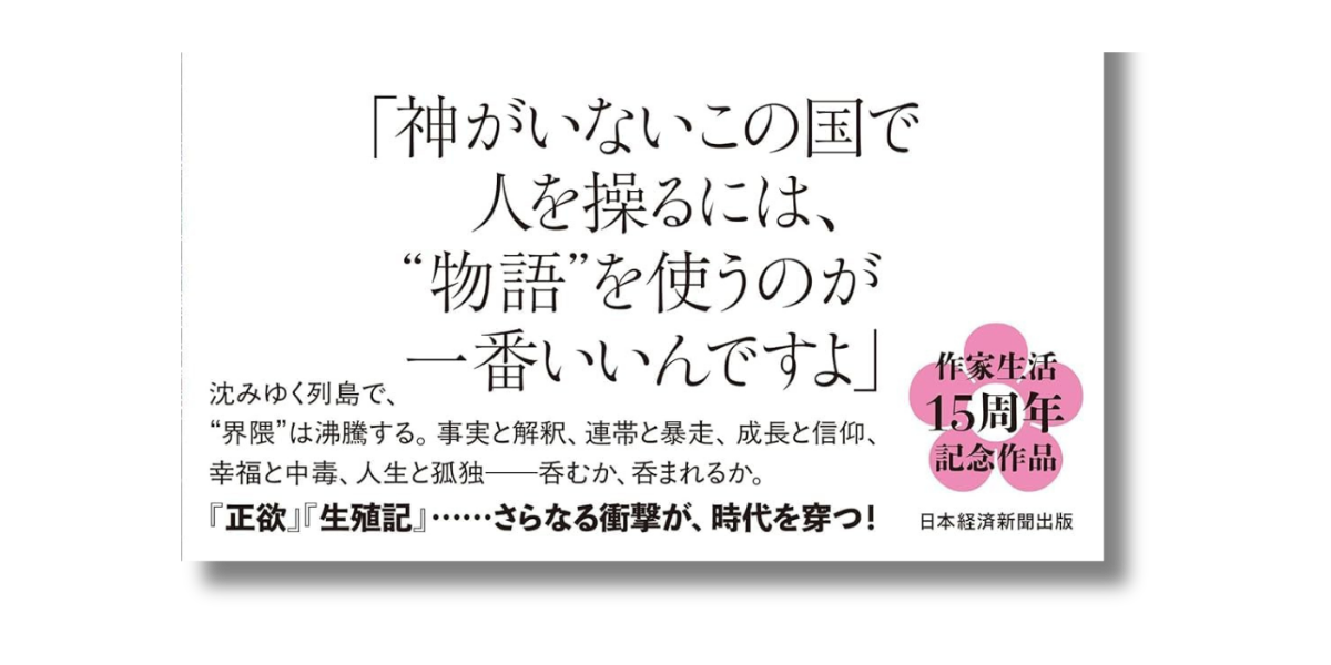 この帯の凄さは、「物語」という美しく温かい響きを持つ言葉を、人を支配するための「装置」として冷徹に定義した点にあります。「神がいない」という空虚な時代背景を突きつけつつ、そこに「物語」という依存先を提示する。読者はこの一文を目にした瞬間、自分が熱狂している対象もまた、誰かに設計された物語ではないかという底知れない不安と、それを確かめたいという強烈な好奇心に囚われます。