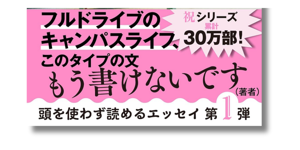 この帯の凄さは、「過去の自分に対する、今の自分からの痛烈なツッコミ」をそのままキャッチコピーにした点にあります。「フルドライブのキャンパスライフ」という少し恥ずかしいほどキラキラした言葉を、あえて「もう書けない」と否定することで、著者の成長と、その文章が持つ「期間限定の輝き」を強調しています。この自虐的な一文があるだけで、読者は「一体どんな痛い(でも面白い)文章が書かれているんだ?」とページをめくらずにはいられなくなります。